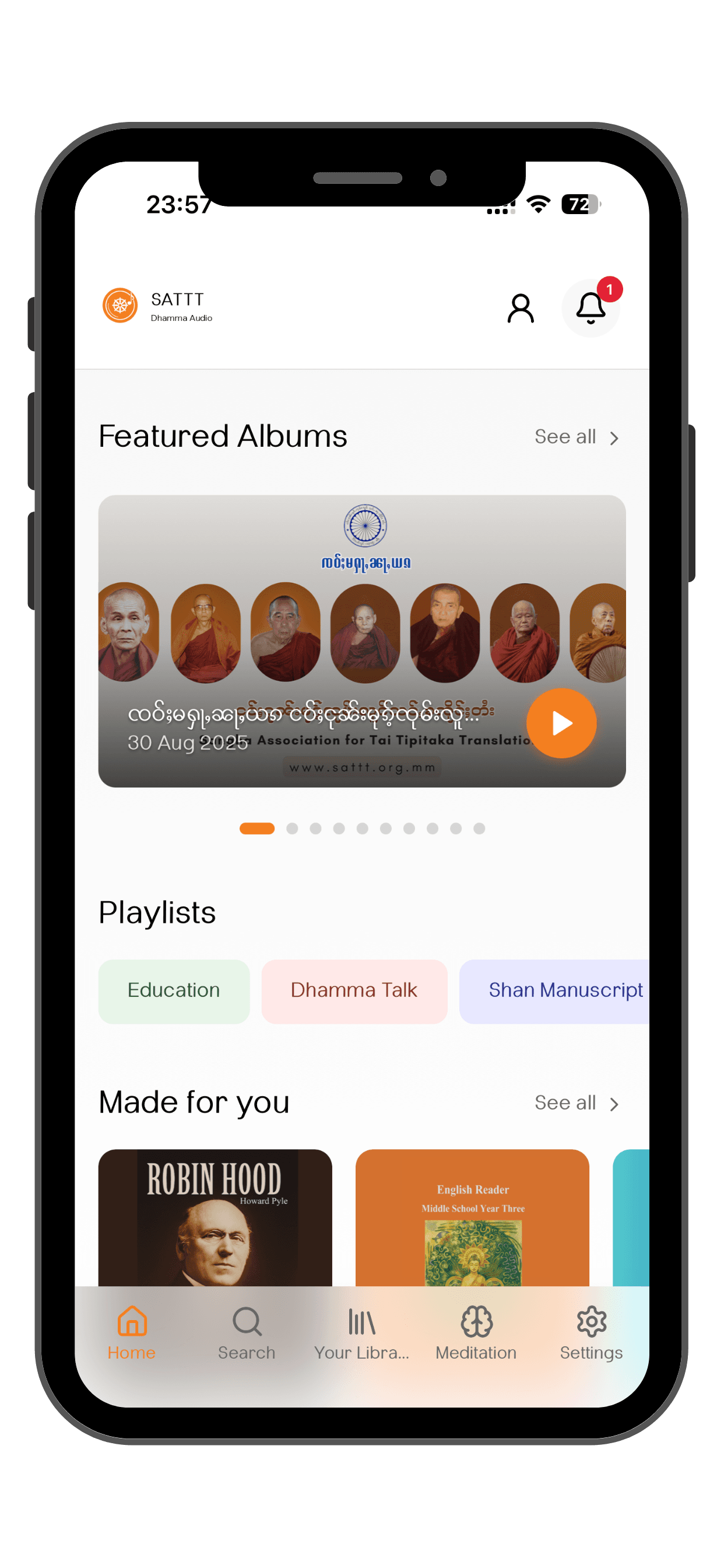 Welcome to SATTT Dhamma Audio — a modern Dhamma audio platform developed by the Sangha Association for Tai Tipitaka Translation with loving-kindness, to support your spiritual journey and nourish the Dhamma community.